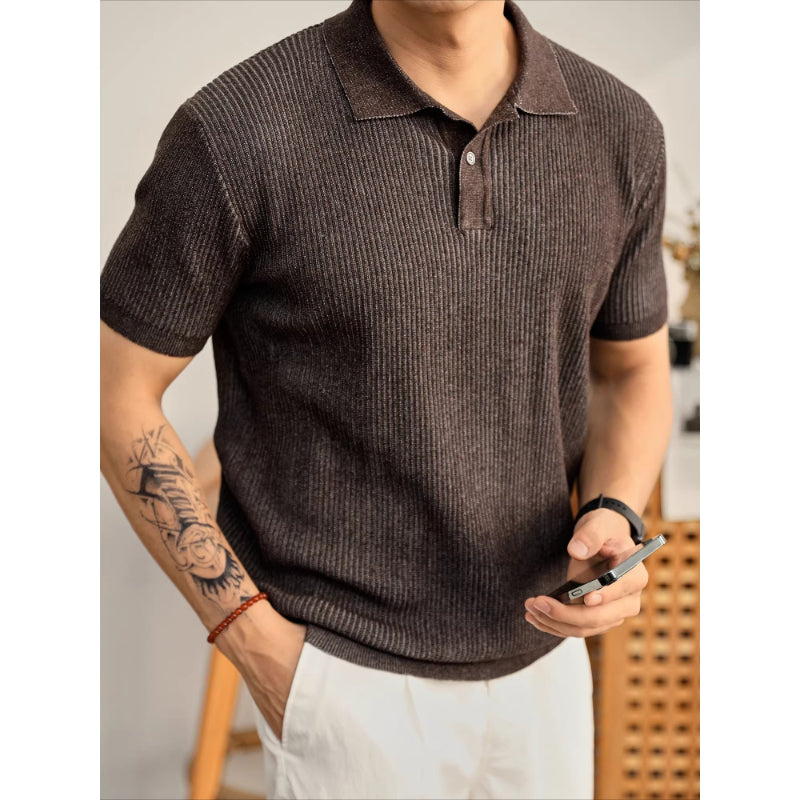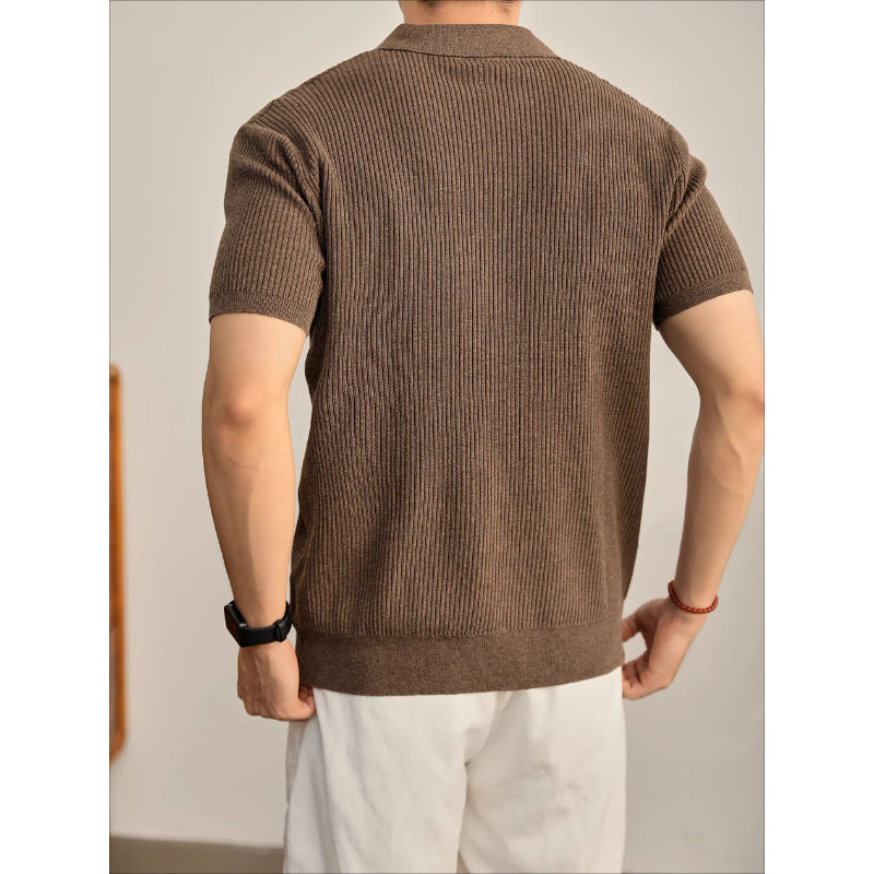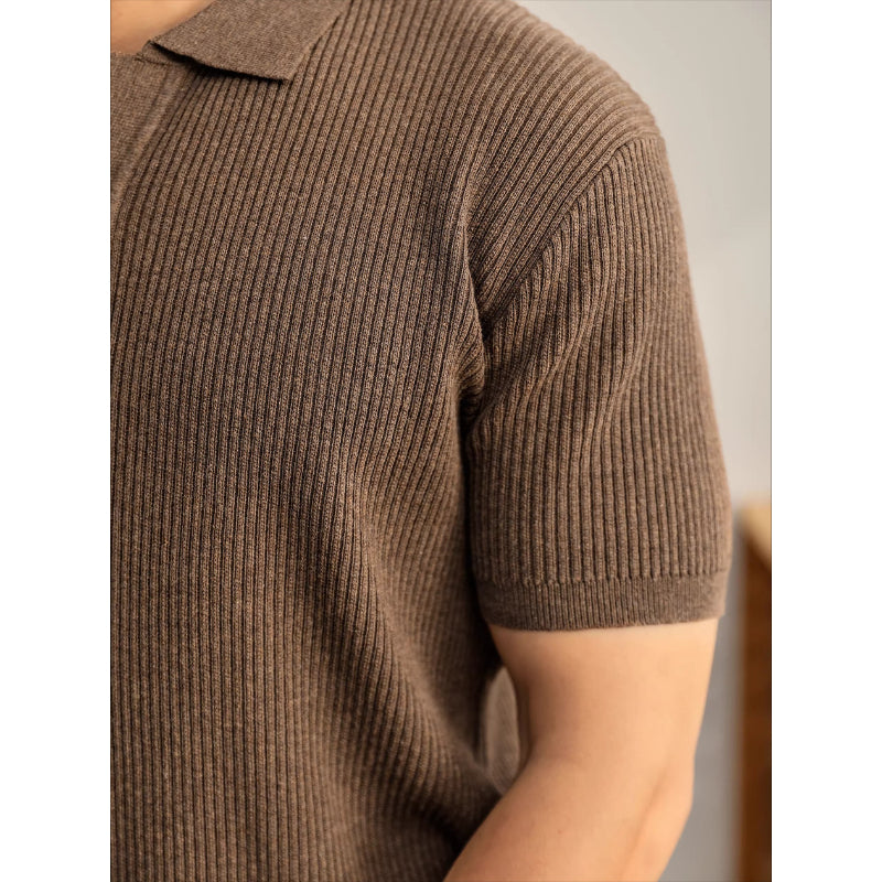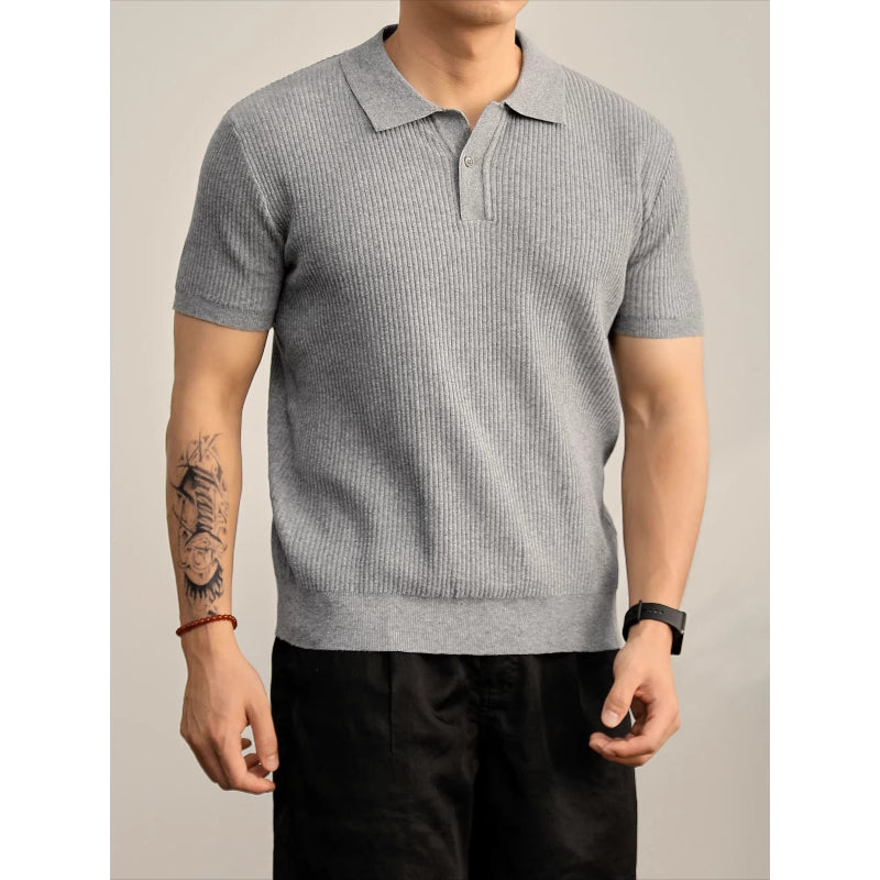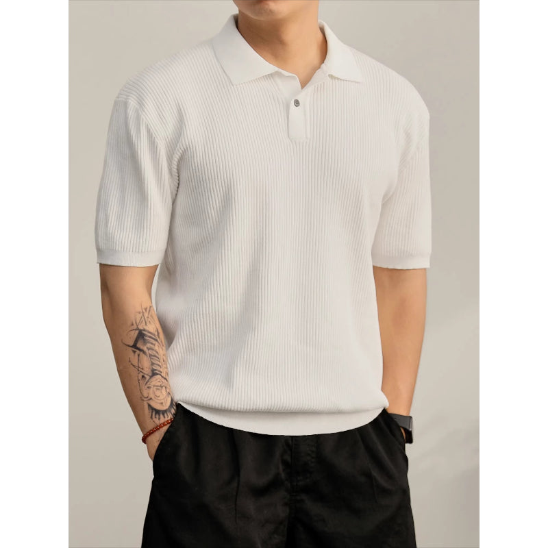 Cooling Ribbed Knit Collared Polo Shirt