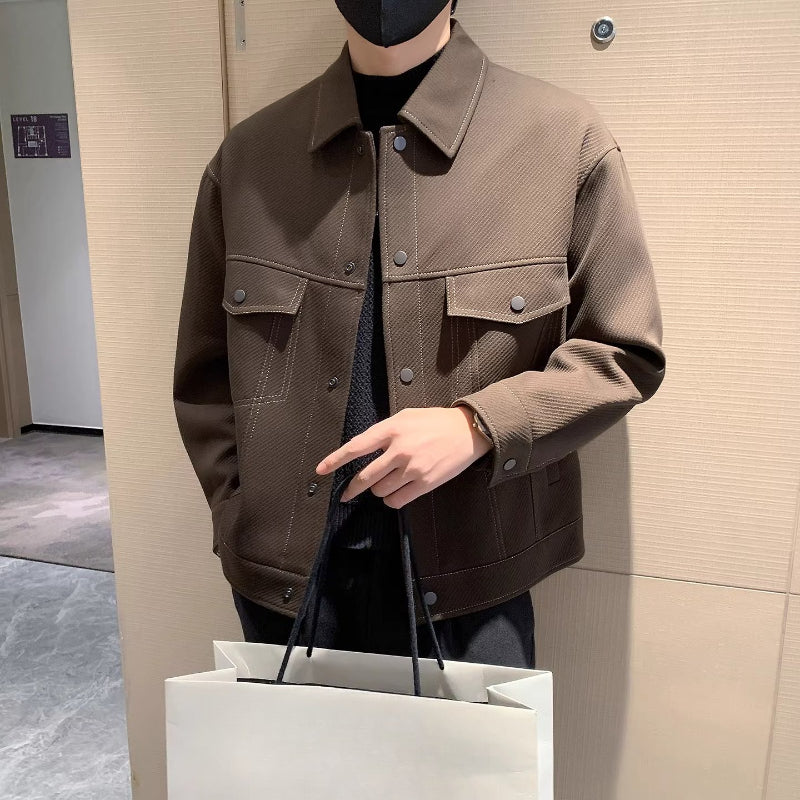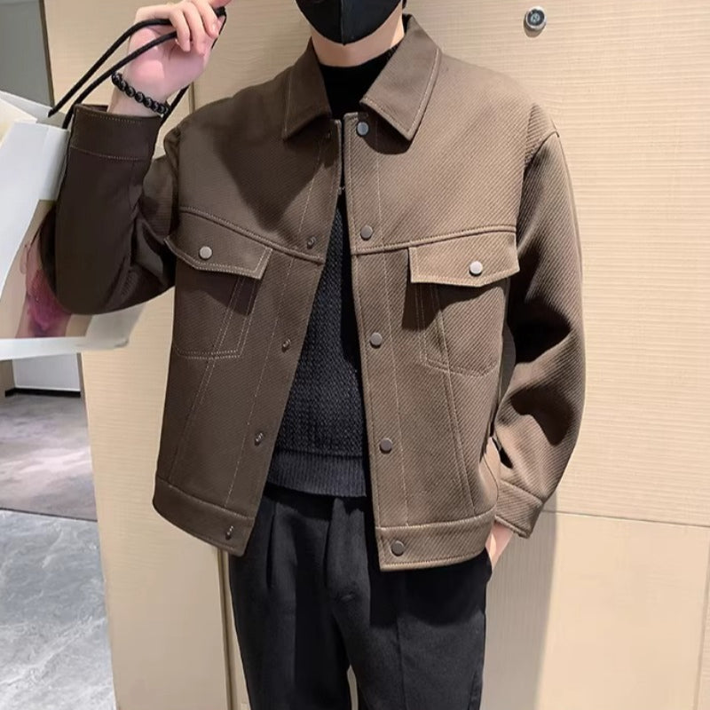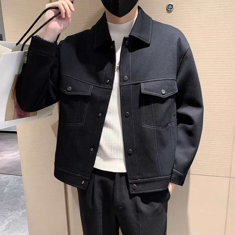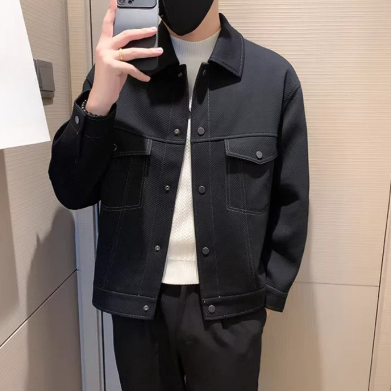 Collared Twill Topstitch Work Jacket