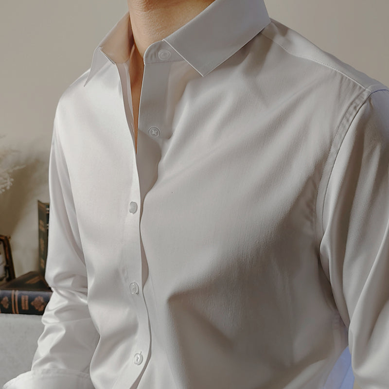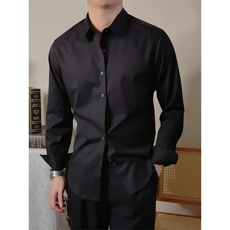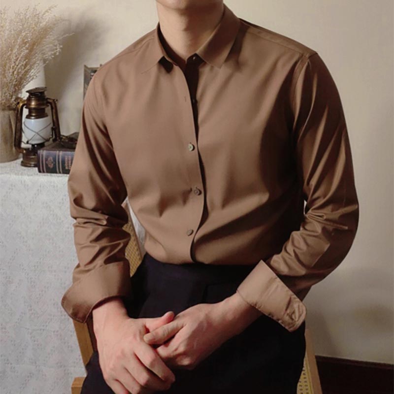 Men's Square Collar Solid Color Long Sleeve Shirt
