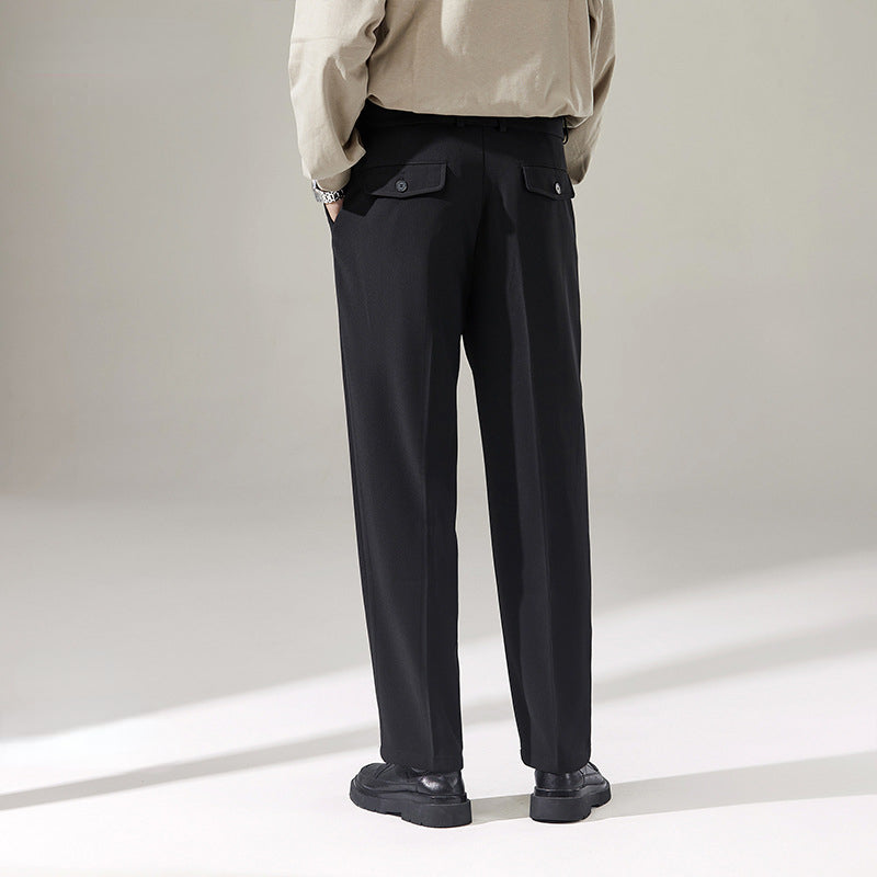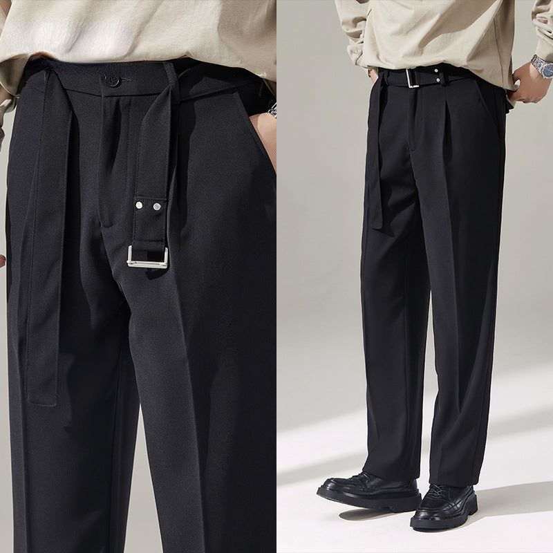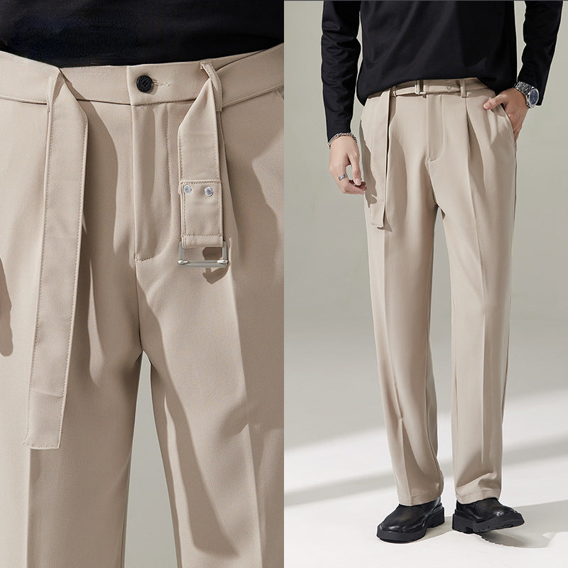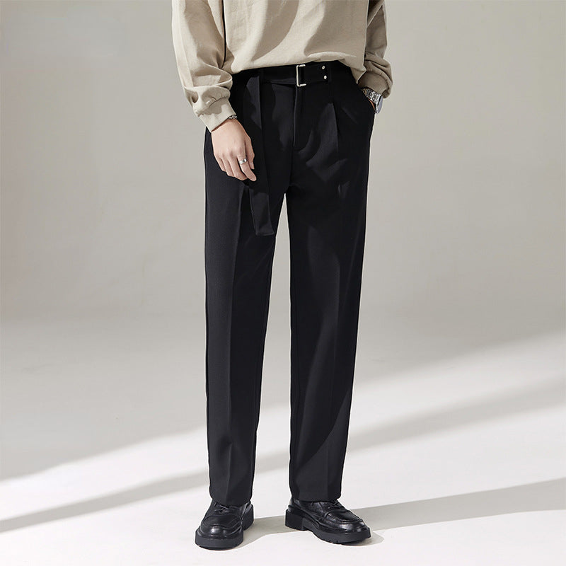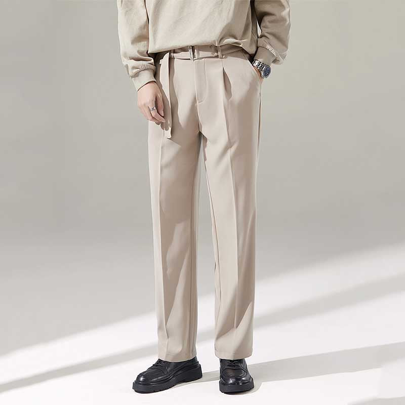Men's Wide Leg Casual Trousers, British Style Drape Straight Leg Pants with Belt, Loose Fit