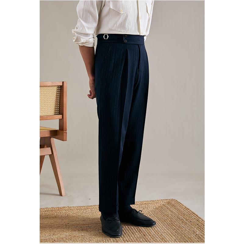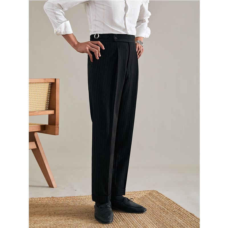 Men's High Waisted Pants Striped Casual Business Straight Suit Trousers